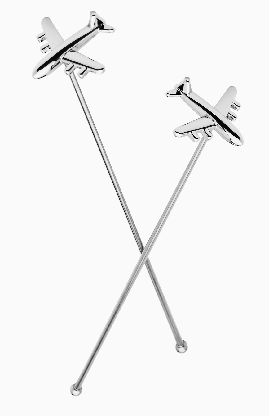 Airplane Stirrers Set of Two $15.00 Excl. tax In stock Add to cartLogin for wishlistDescriptionSet of two silver stirrers with a miniature airplane at the top. Dimensions: 7.00 X 2.00 X .50" H