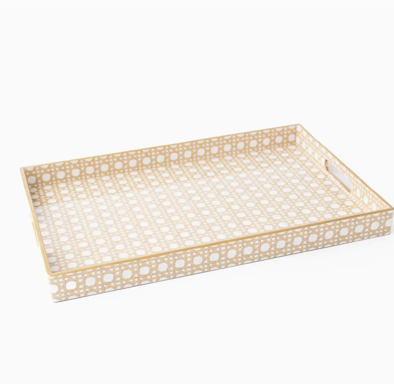 Large Tan Cane Tray $42.00 Excl. tax In stock Add to cartLogin for wishlistDescriptionResin tray with a tan cane design and handles ideal for serving or decoration. 15.75" x 10.25" x 1.25" Spot Clean Recommended Designed in the USA; Imported