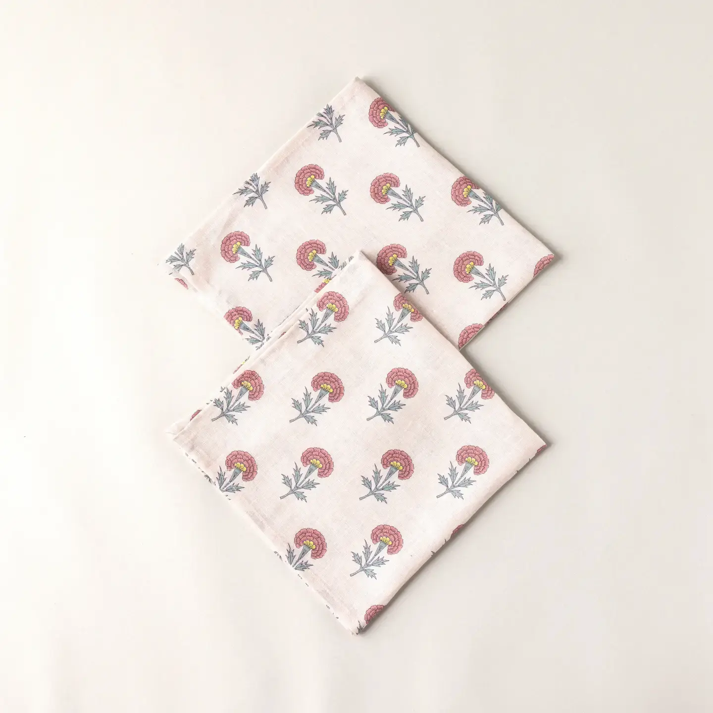 Blush Petals Napkins $20.00 Excl. tax In stock Add to cartLogin for wishlistDescription100% linen napkins with a blush, floral block print design made in India. Machine washable. 20" x 20" x 0.1"