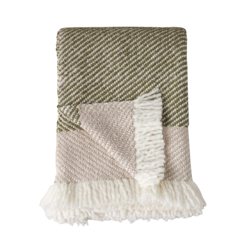 Chunky Twill Throw Blanket $125.00 Excl. tax In stock Add to cartLogin for wishlistDescriptionChunky knit wool-blend throw blanket with a fluffy fringe. Available in dark blue and green colorways. Made in India. Dry clean only. 70" x 50"