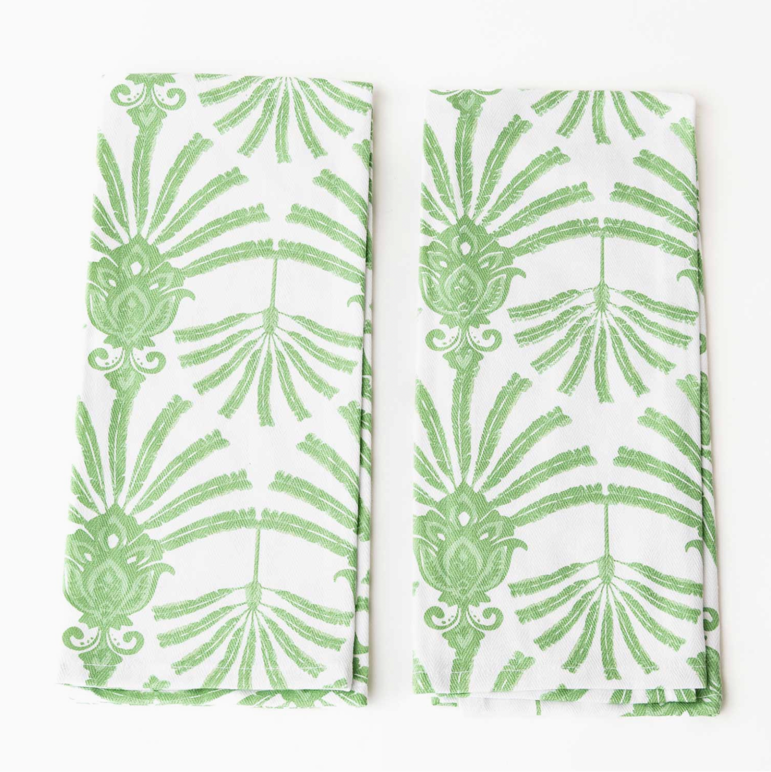 Pair of Deco Palm Kitchen Towels $24.00 Excl. tax In stock Add to cartLogin for wishlistDescriptionTwo-piece kitchen towel set with palm tree motif pattern printed on a durable cotton fabric. 27" x 18" x .25" 100% Cotton Machine Wash Cold, Gentle Cycle. Tumble Dry Low. Do Not Iron. Do Not Dry Clean Designed in the USA; Imported