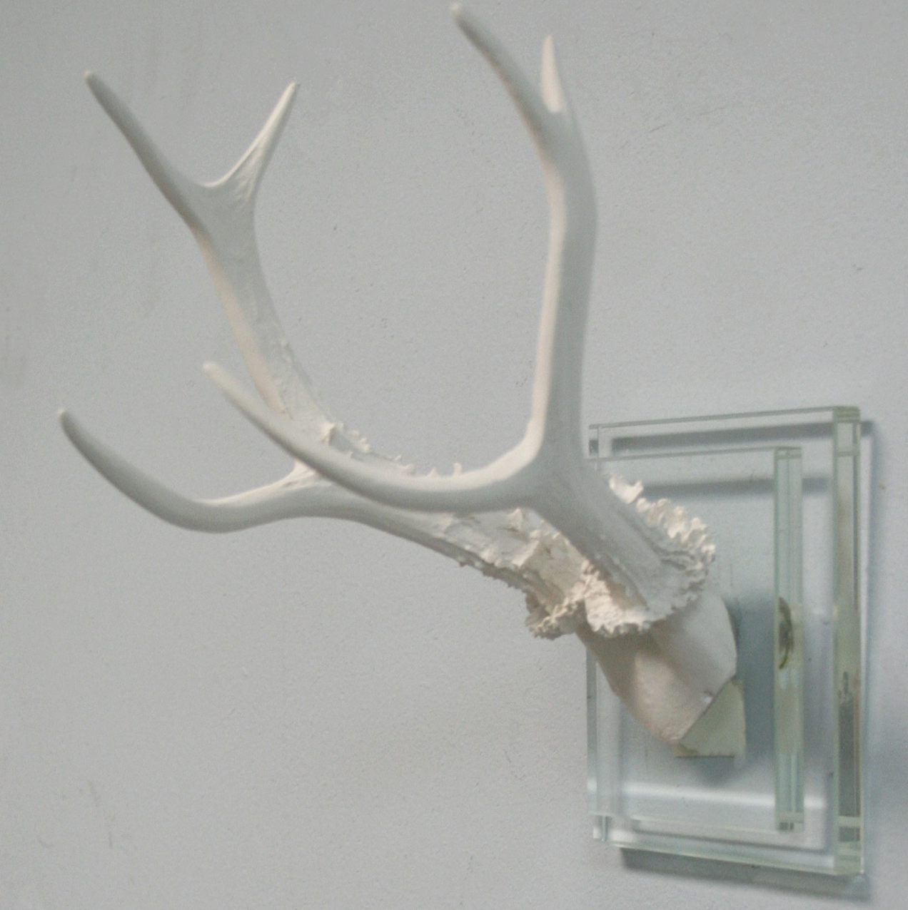 White Antler Double Glass Wall Mount - 8.3"H Size $49.99 Excl. tax In stock Add to cartLogin for wishlistDescriptionHand painted cast resin white antler on a double glass wall mount. 7.5 x 5.3 x 8.3 in