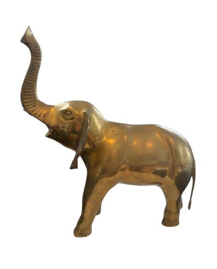 Large Brass Elephant $185.00 Excl. tax In stock Add to cartLogin for wishlistDescriptionVintage hollow brass decorative elephant. Measures about 16” in length trunk to tail. 13” high at tallest point