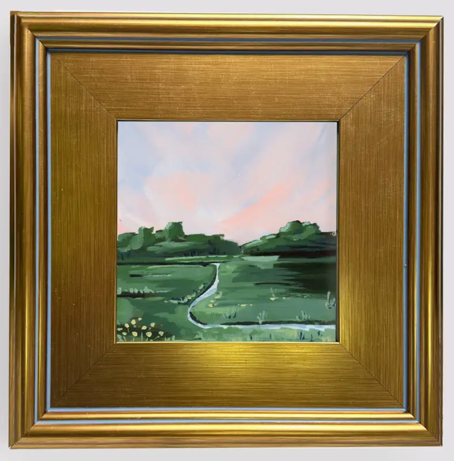Landscape in Pink and Green in Gold Frame $275.00 Excl. tax In stock Add to cartLogin for wishlistDescriptionOriginal painting in pink and green palette, plein air framed. art size 6 x 6" frame size 11 x 11"