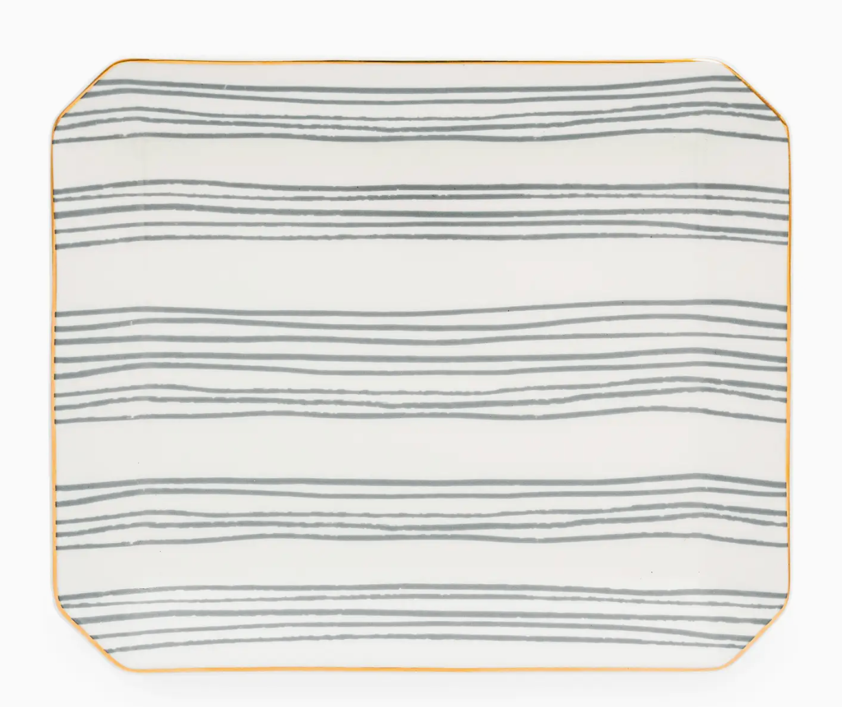 Large Trinket Tray - Dusty Blue Stripe $38.00 Excl. tax In stock Add to cartLogin for wishlistDescriptionLarge Trinket Tray - Dusty Blue StripeProduct descriptionCeramic trinket tray with gold painted details and slate blue stripe 7.75 inches x 6.5 inches