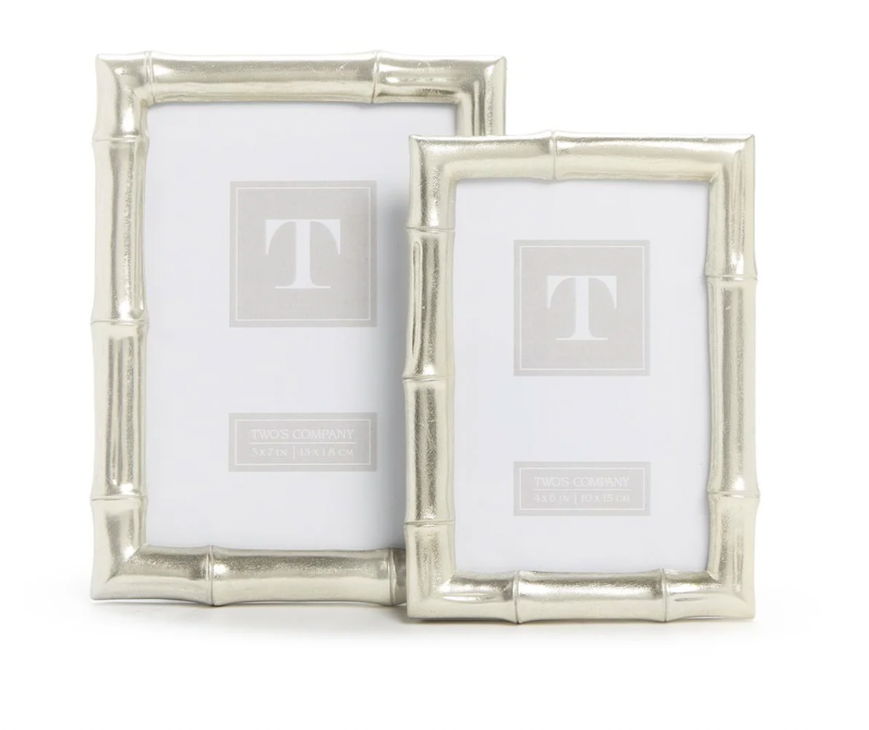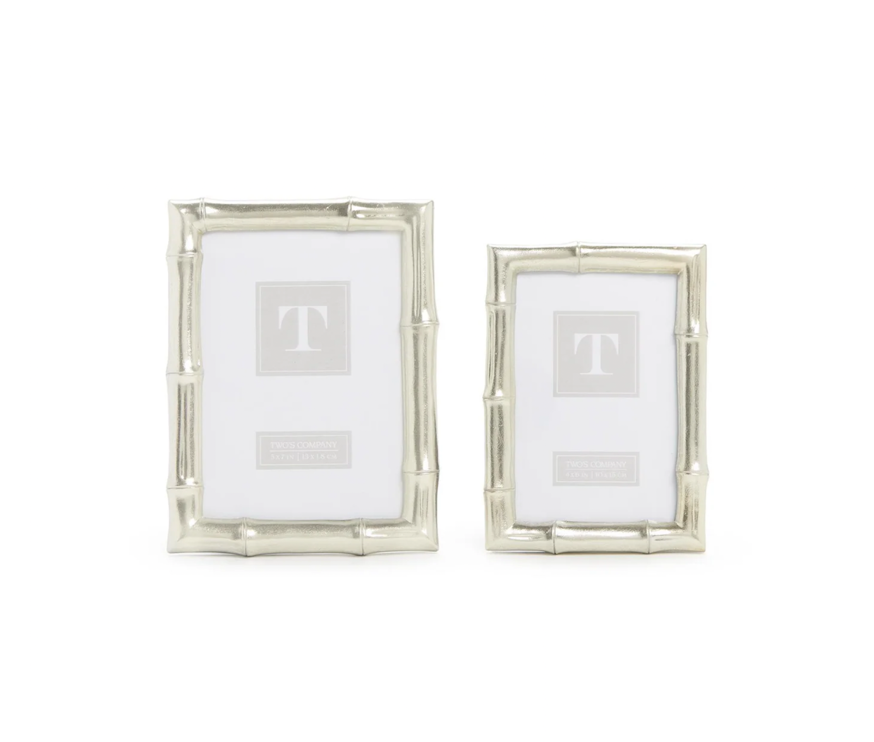 Medium Silver Bamboo Frame $34.00 Excl. tax In stock Add to cartLogin for wishlistDescriptionA medium picture frame in a bamboo chinoiserie style with a brushed silver finish. 6.25" x 0.75"x 8.25"