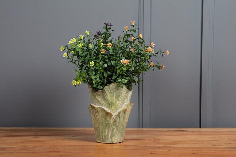 Leaf Vase $25.00 Excl. tax In stock Add to cartLogin for wishlistDescriptionInspired by nature, this green cement vase wraps like a curled leaf. Textural, earthy, and perfectly sized for small stems or simple styling. 6.5"x5"x7"