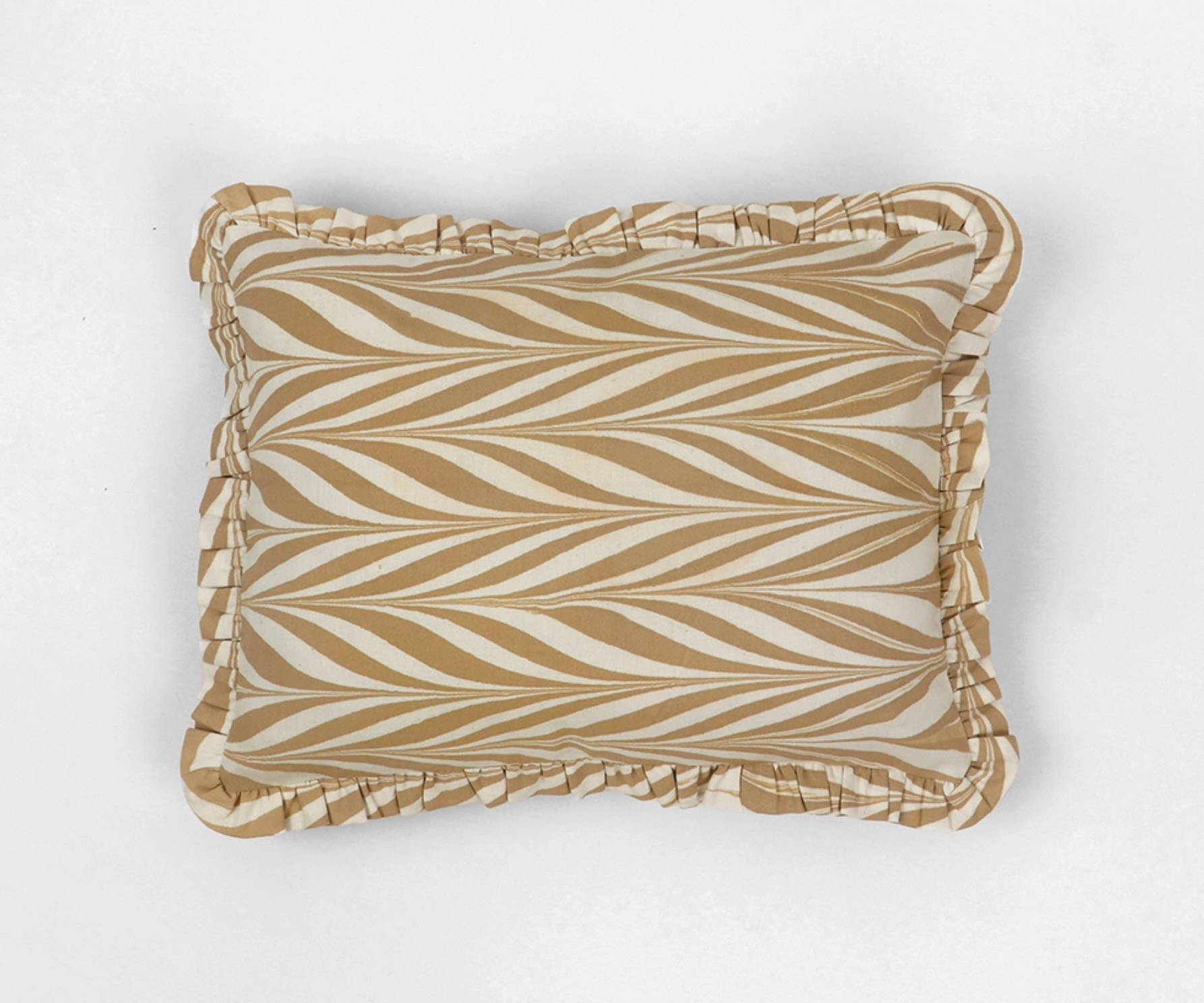 Hand Marbled Cotton Ruffled in Soybean $56.00 Excl. tax In stock Add to cartLogin for wishlistDescriptionHand-marbled cotton cushion covers with a concealed zipper, inspired by water, sky, and mountain patterns, handmade in small batches by master artisans. 12" x 16"