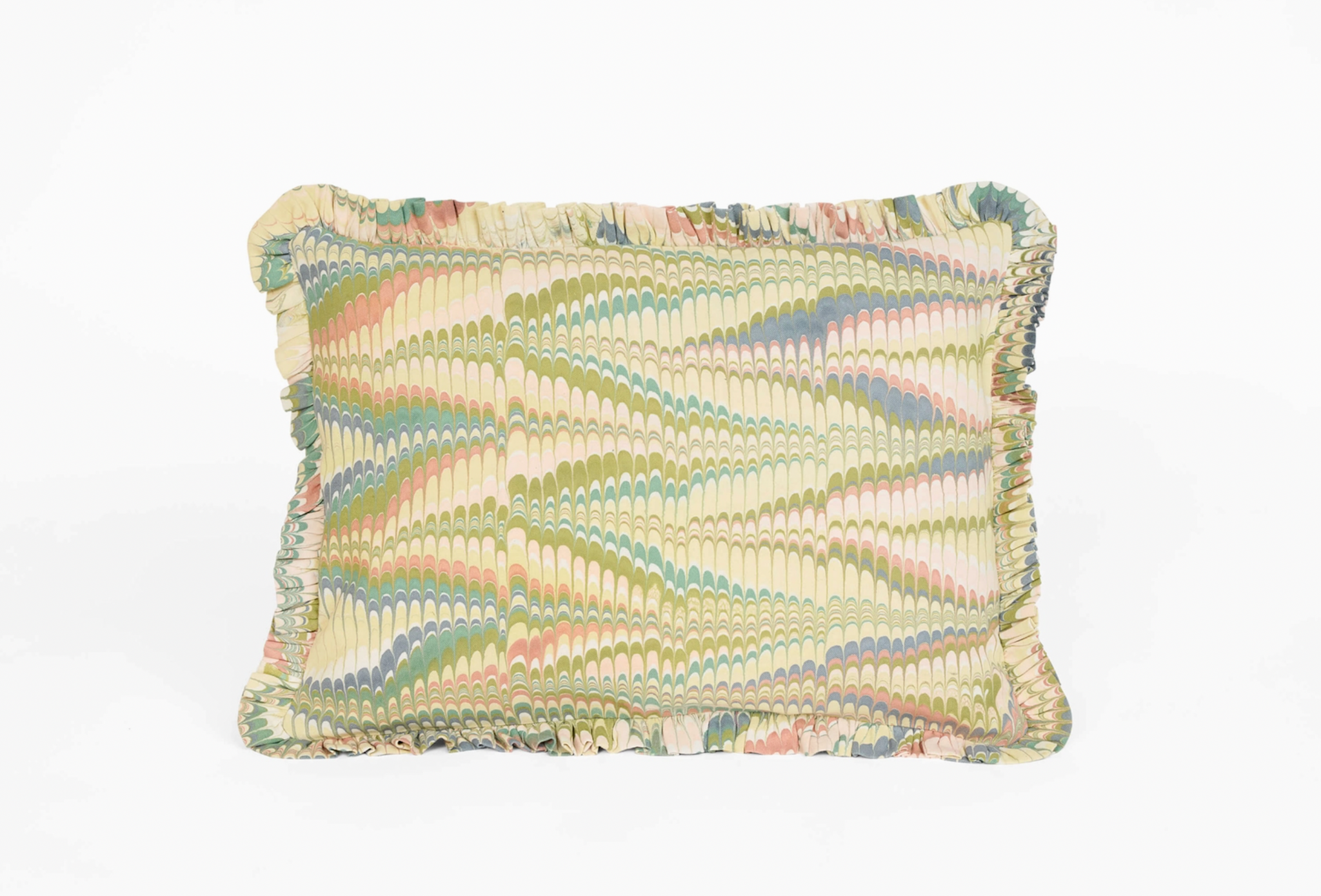 Marbled Ruffled Pillow, Moss Mountain $56.00 Excl. tax In stock Add to cartLogin for wishlistDescriptionHand-marbled cotton cushion covers with a concealed zipper, inspired by water, sky, and mountain patterns, handmade in small batches by master artisans. 12" x 16"