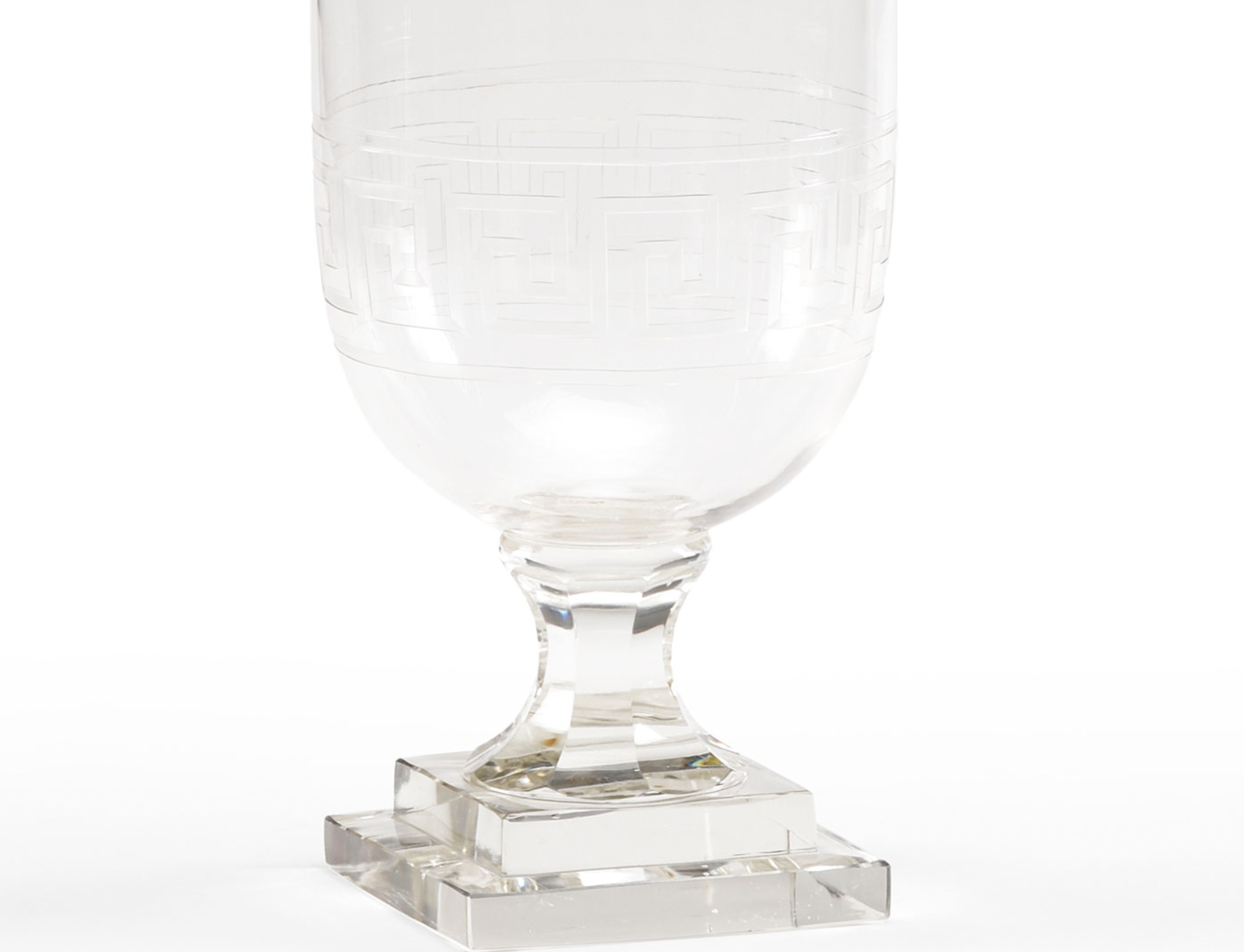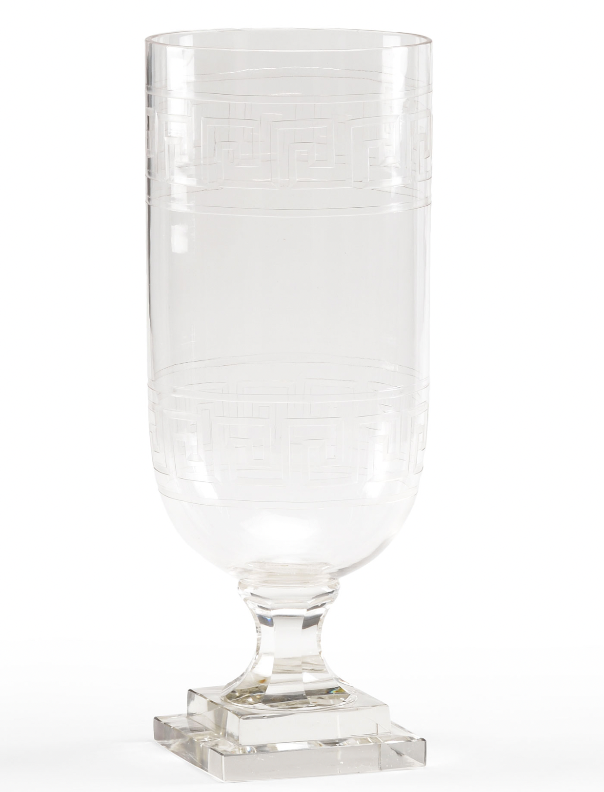 Set of Two Greek Key Hurricanes $350.00 Excl. tax In stock Add to cartLogin for wishlistDescriptionA set of two hand blown crystal hurricanes with etched Greek key designs. 14.5" x 5.5"