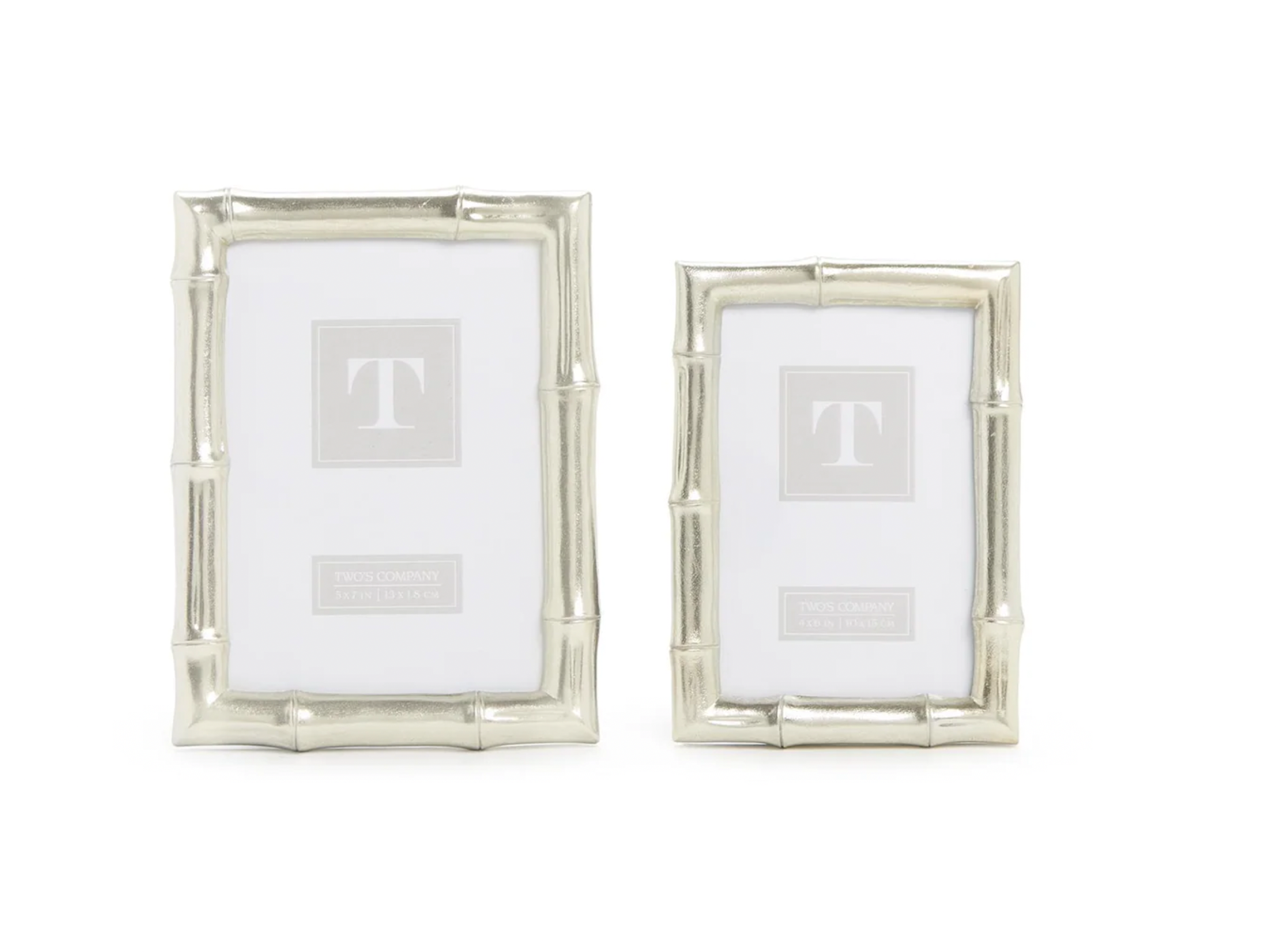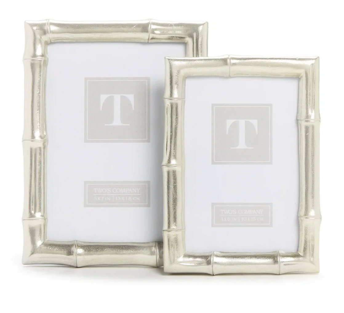 Small Silver Faux Bamboo Frame $24.00 Excl. tax In stock Add to cartLogin for wishlistDescriptionA set of two picture frames, one larger than the other, in a bamboo chinoiserie style with a brushed silver finish. small: 5.25" x 0.75" x 7.25"