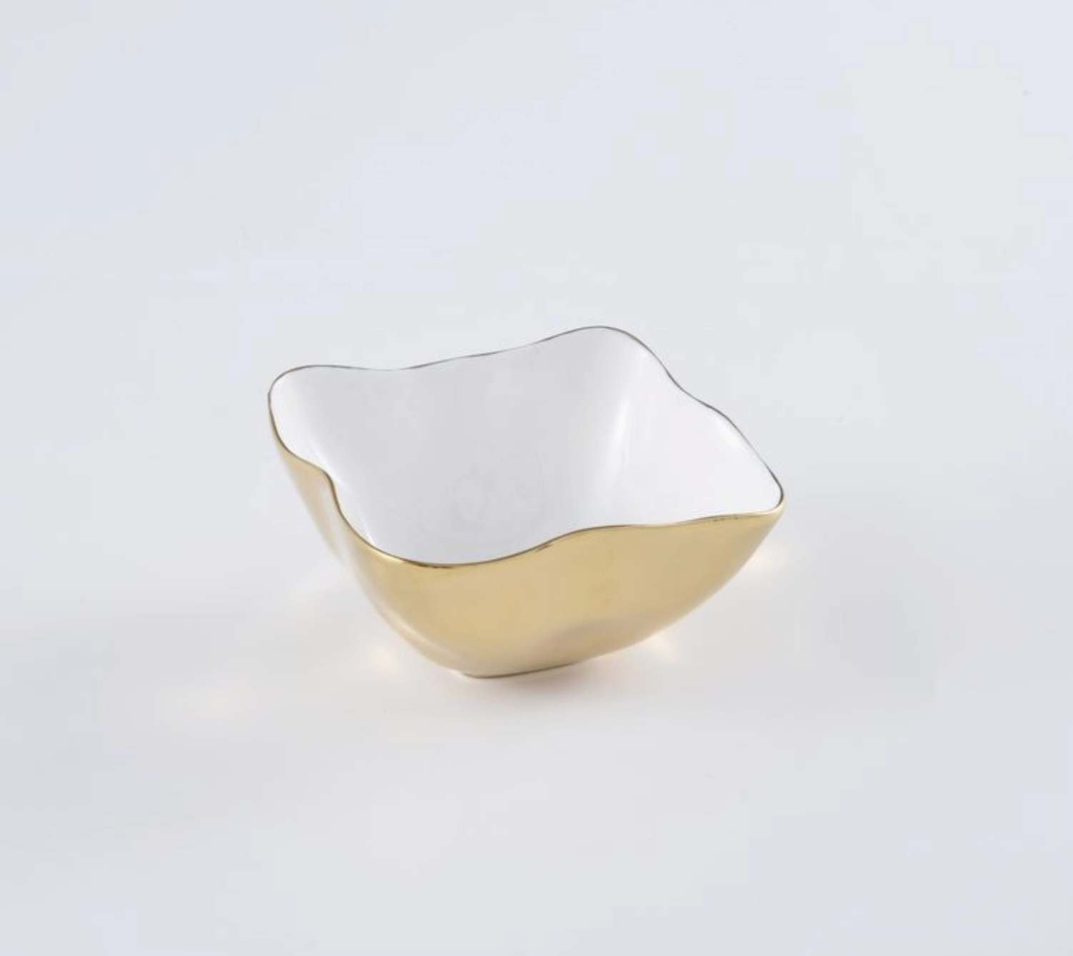 Square Snack Bowl $20.00 Excl. tax In stock Add to cartLogin for wishlistDescriptionSquare, porcelain snack bowl with white interior and gold titanium exterior. Food safe, tarnish free, dishwasher safe, oven safe to 550°.
